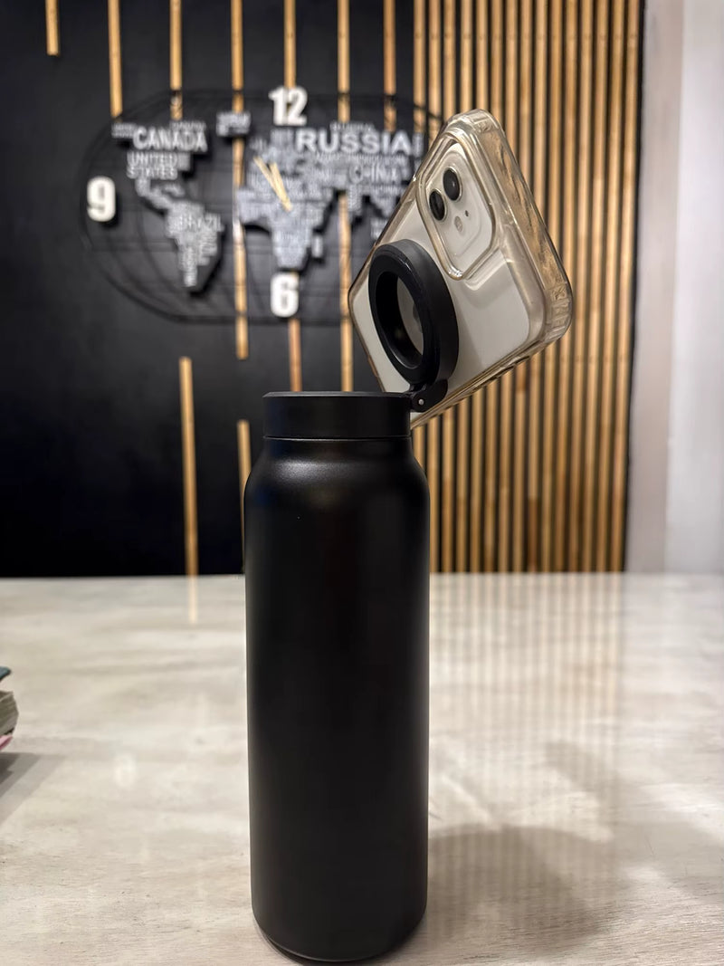 Snap your phone in place and instantly transform your bottle into a tripod. Perfect for recording workouts, joining calls, or following tutorials — completely hands-free.